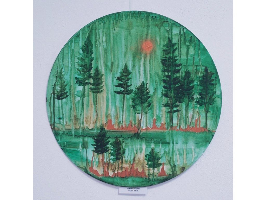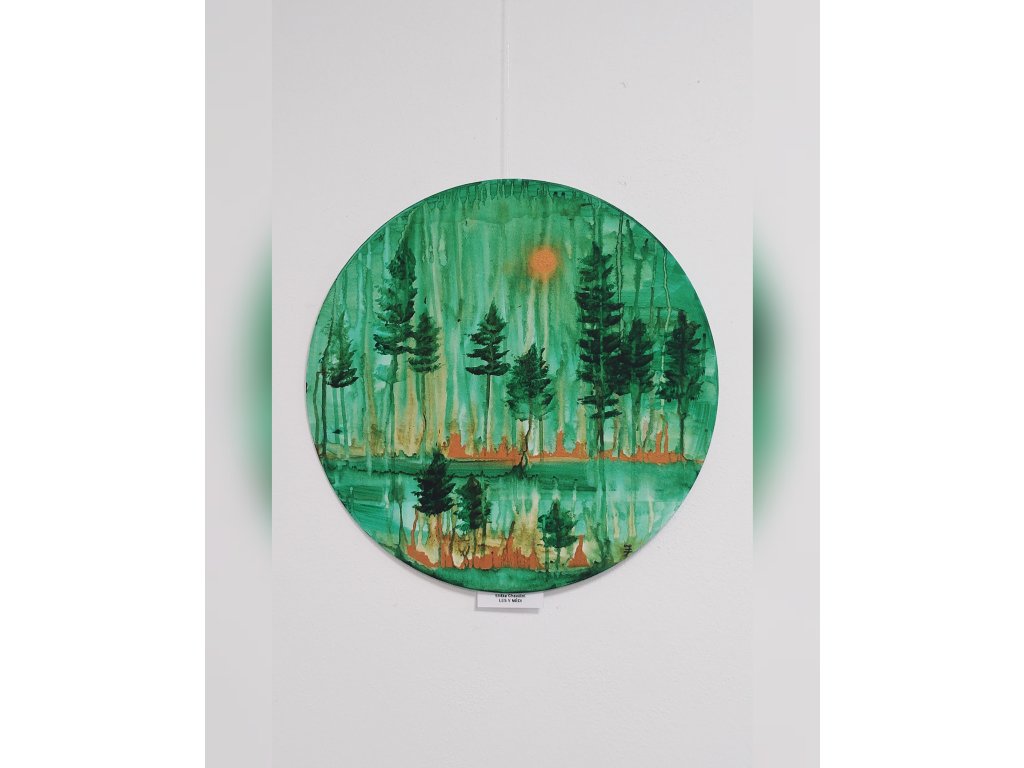 Akryl, obraz na plátně. Kulatý tvar (plátno napnuté na tvrdém kartonu).