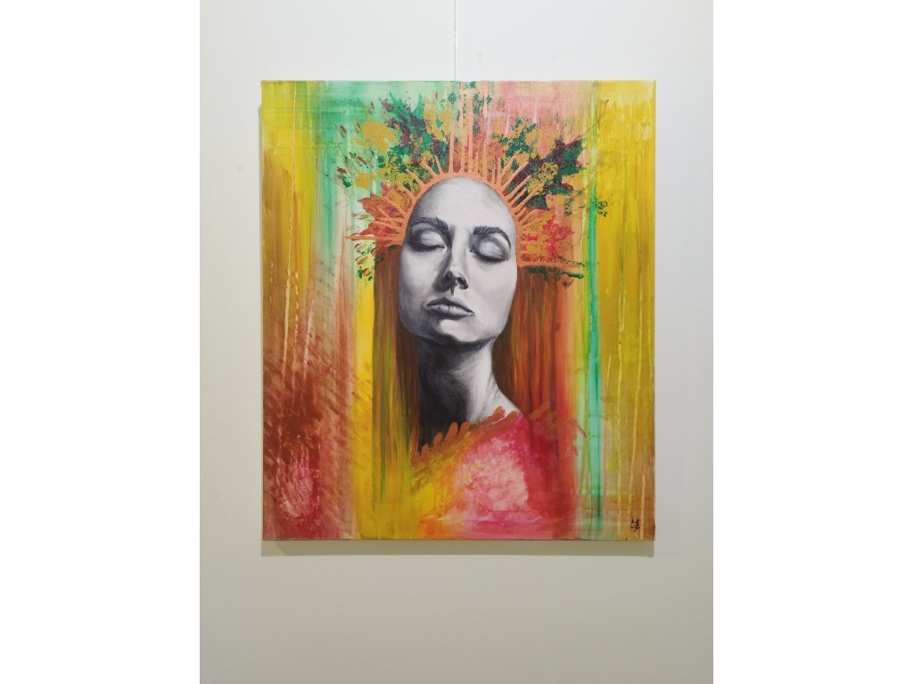 Akryl, obraz na plátně, plátno napnuté na dřevěném rámu.
