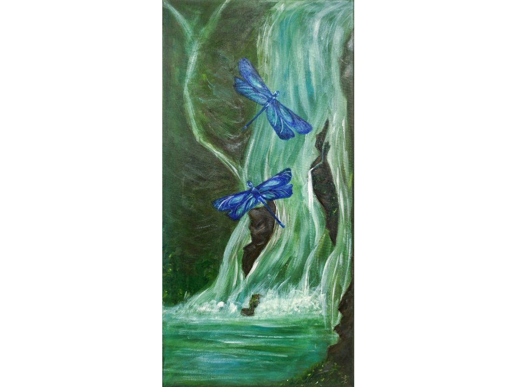 Akryl na plátně, obraz je napnutý na dřevěném rámu.